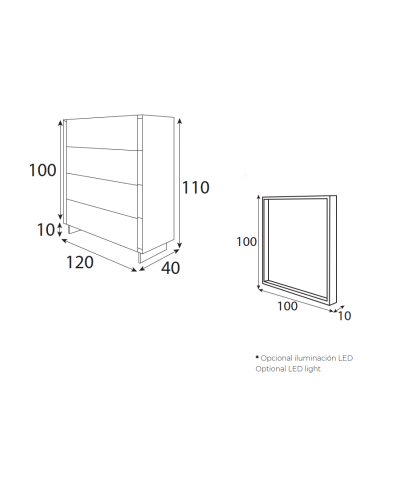 - Espejo 100 cm de ancho 100 cm de alto x 10 cm de fondo