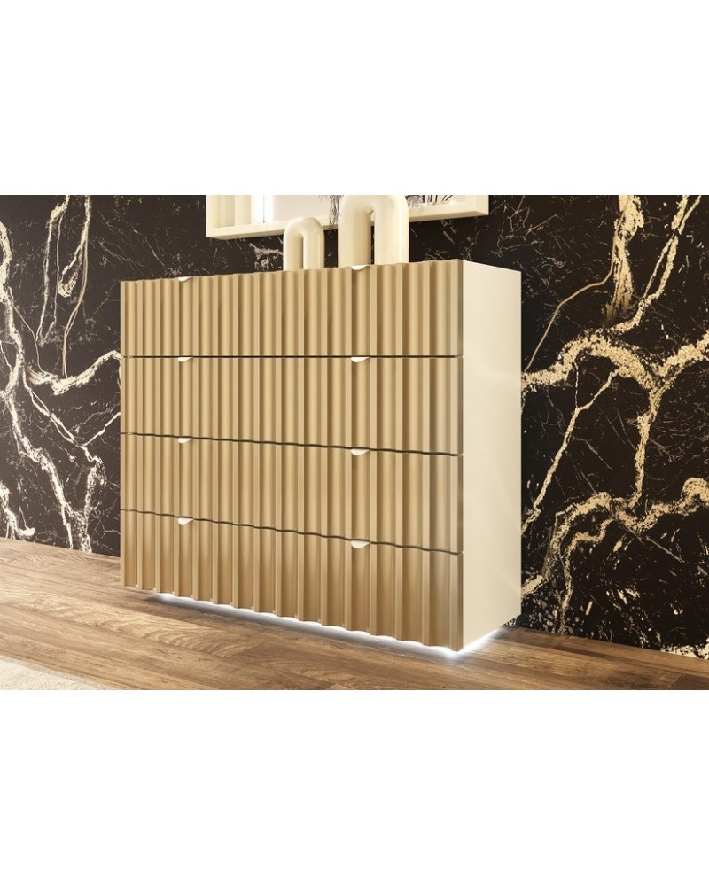Sumérgete en la elegancia y sofisticación con la colección Orión, donde el lujo se fusiona con la funcionalidad en cada detalle. Esta cómoda lacado, emblema de refinamiento, te transporta a un espacio de descanso sublime. Su principal distinción reside en sus frentes ondulados que añaden un toque de distinción y modernidad.