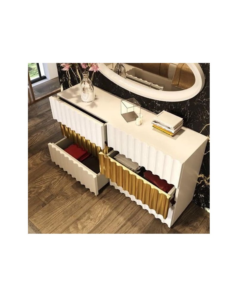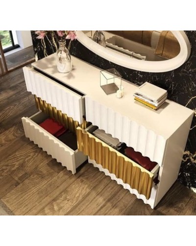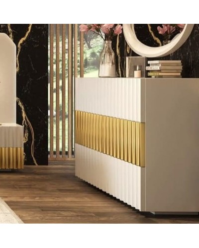 Sumérgete en la elegancia y sofisticación con la colección Orión, donde el lujo se fusiona con la funcionalidad en cada detalle. Esta cómoda , emblema de refinamiento, te transporta a un espacio de descanso sublime. Su principal distinción reside en sus frentes ondulados que añaden un toque de distinción y modernidad.