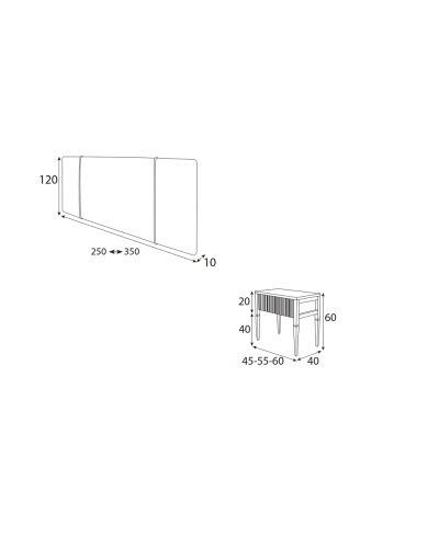 - Cabezal tapizado fuelle de 250 cm a 350 cm largo x 150 cm alto x 10 cm fondo