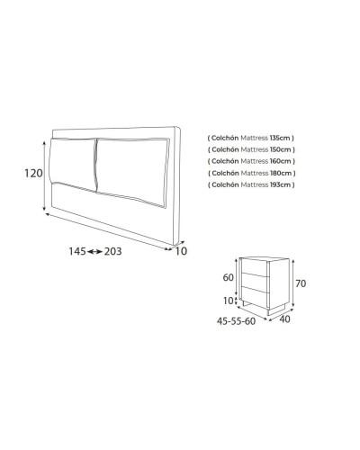 - Cabezal 160 cm de largo x 120 cm alto x 10 cm fondo (Disponible para otras medidas de colchón)