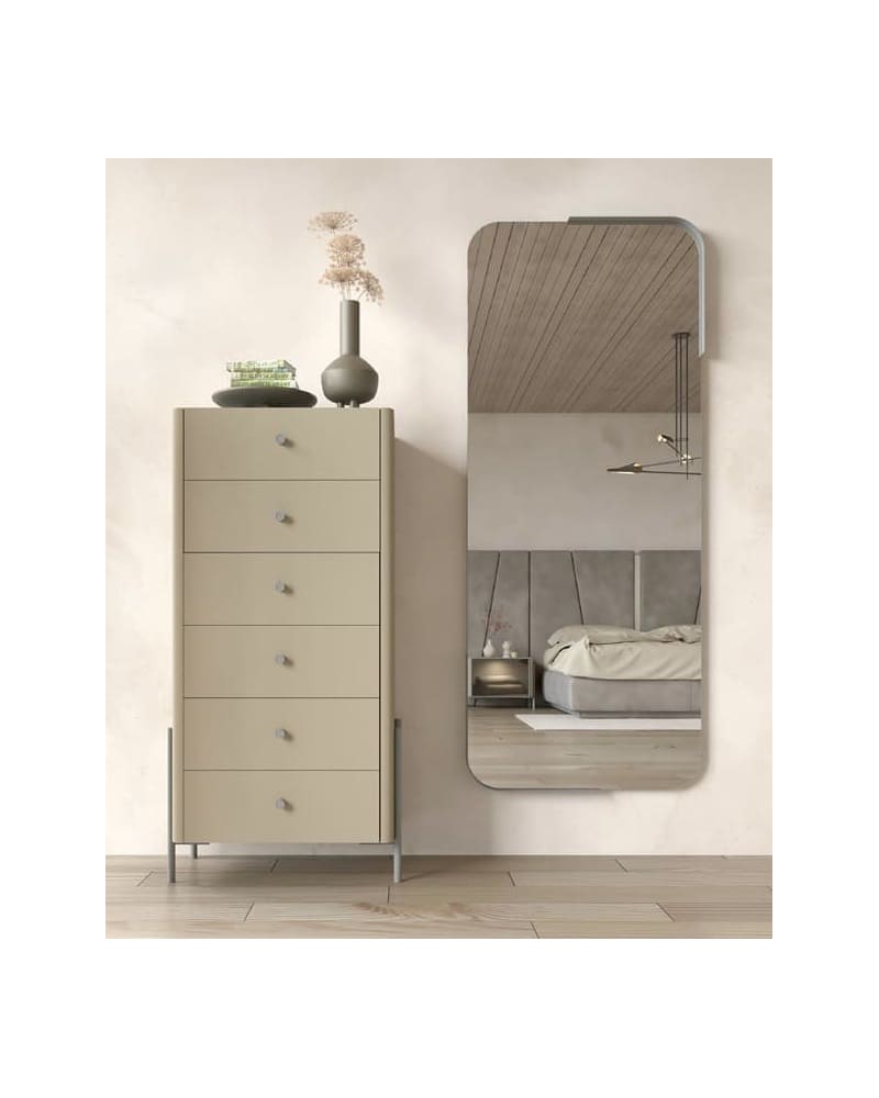 Sinfonier elevado con 6 cajones y espejo de diseño asimétrico. Estilo Nala, también en vertical.