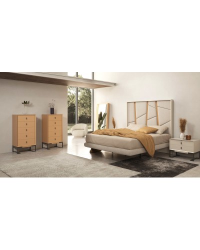 El sinfonier Luxor 01 mantiene la coherencia estética de la colección con sus líneas rectas, tiradores dobles y base metálica. Con seis cajones verticales, es ideal para espacios que requieren gran capacidad sin renunciar al diseño. Su perfil delgado lo hace versátil y perfecto para habitaciones de distintas dimensiones.