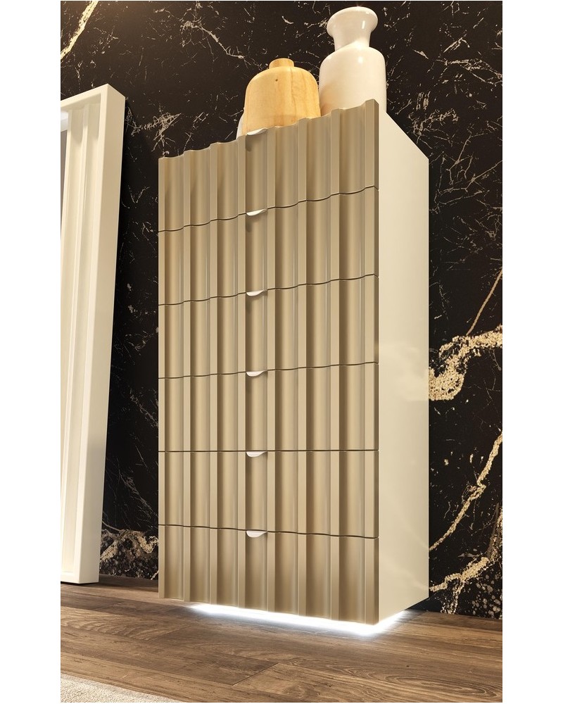 Sumérgete en la elegancia y sofisticación con la colección Orión, donde el lujo se fusiona con la funcionalidad en cada detalle. Este sinfonier lacado, emblema de refinamiento, te transporta a un espacio de descanso sublime. Su principal distinción reside en sus frentes ondulados que añaden un toque de distinción y modernidad.