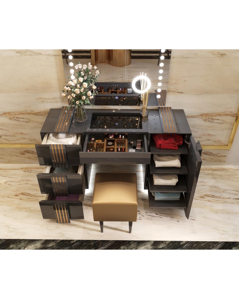 Si estás buscando un tocador de maquillaje que combine estilo, calidad y funcionalidad, no busques más. Te presentamos este fantástico tocador de maquillaje lacado de alta calidad con espejo e iluminación LED, un verdadero sueño hecho realidad para los amantes del maquillaje.