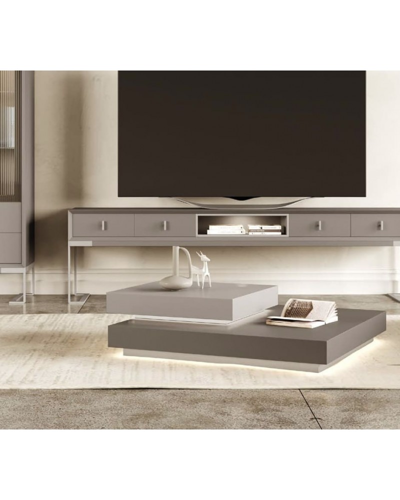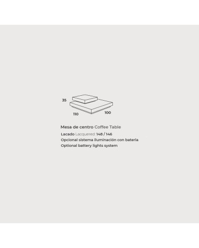 Las formas geométricas y los acabados en tonos 146 y 148 refuerzan el estilo sobrio y elegante de la colección Luxor. Con sus 100 x 100 cm de superficie y 36 cm de altura, ofrece una presencia equilibrada, ideal para acompañar composiciones de salón modernas sin recargar el entorno.